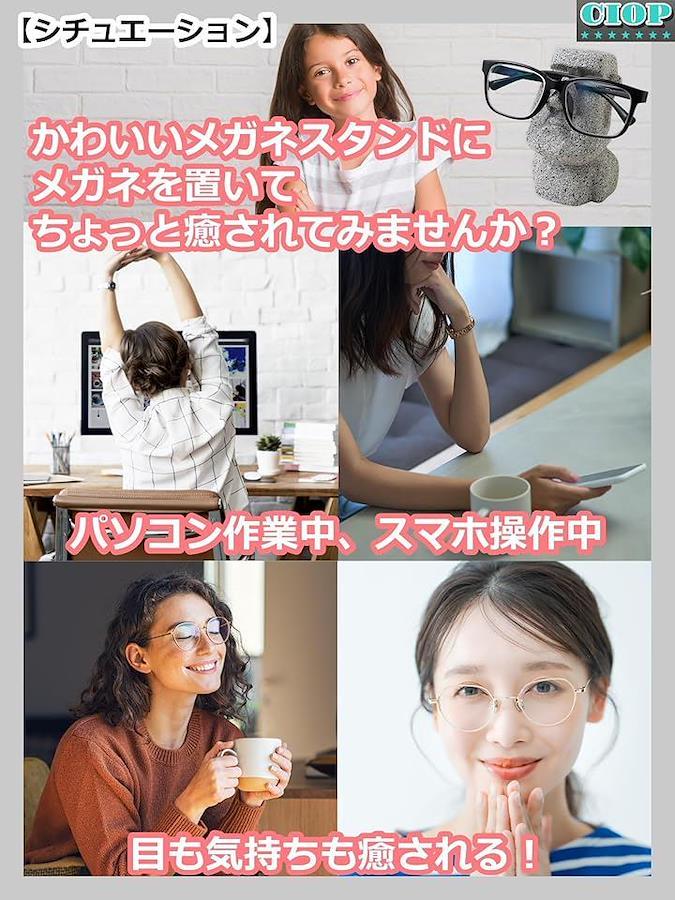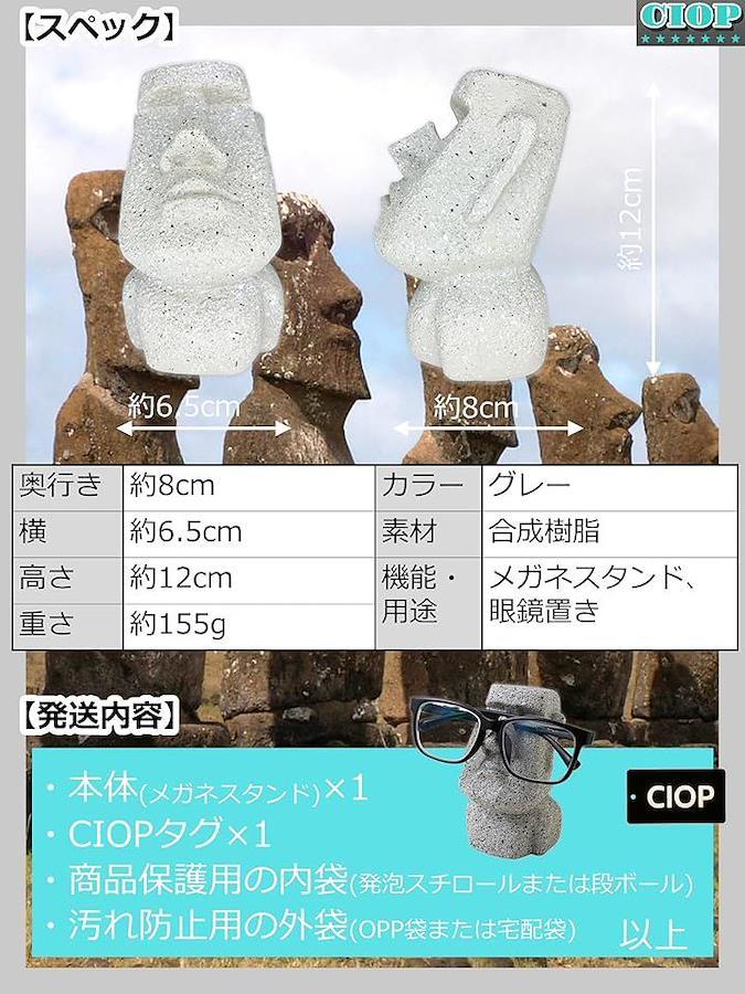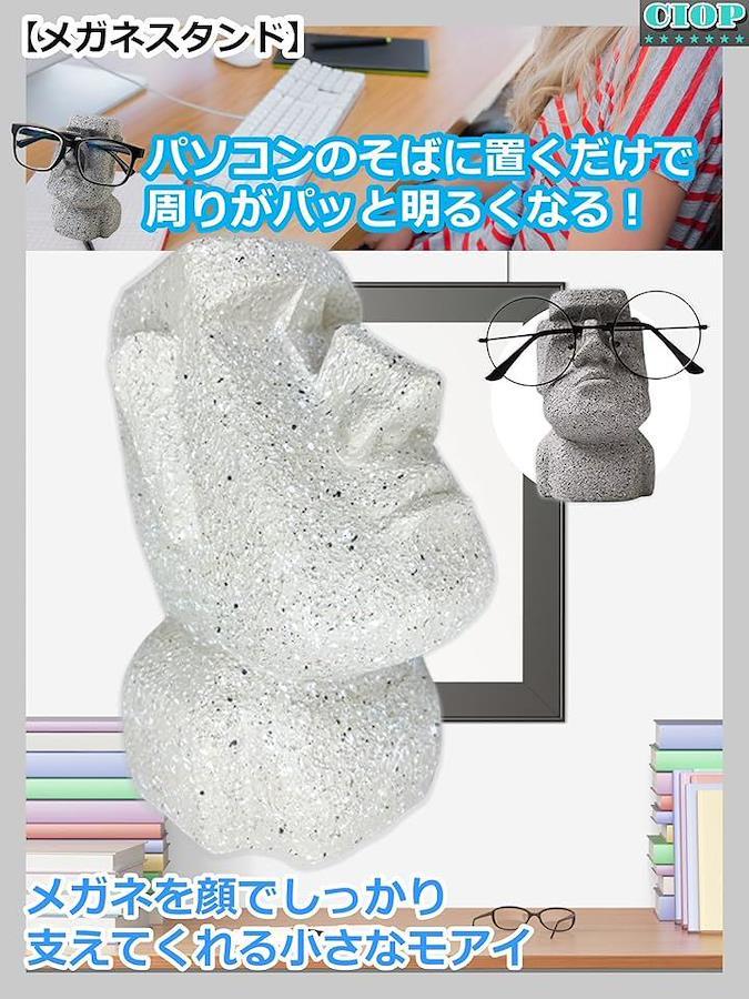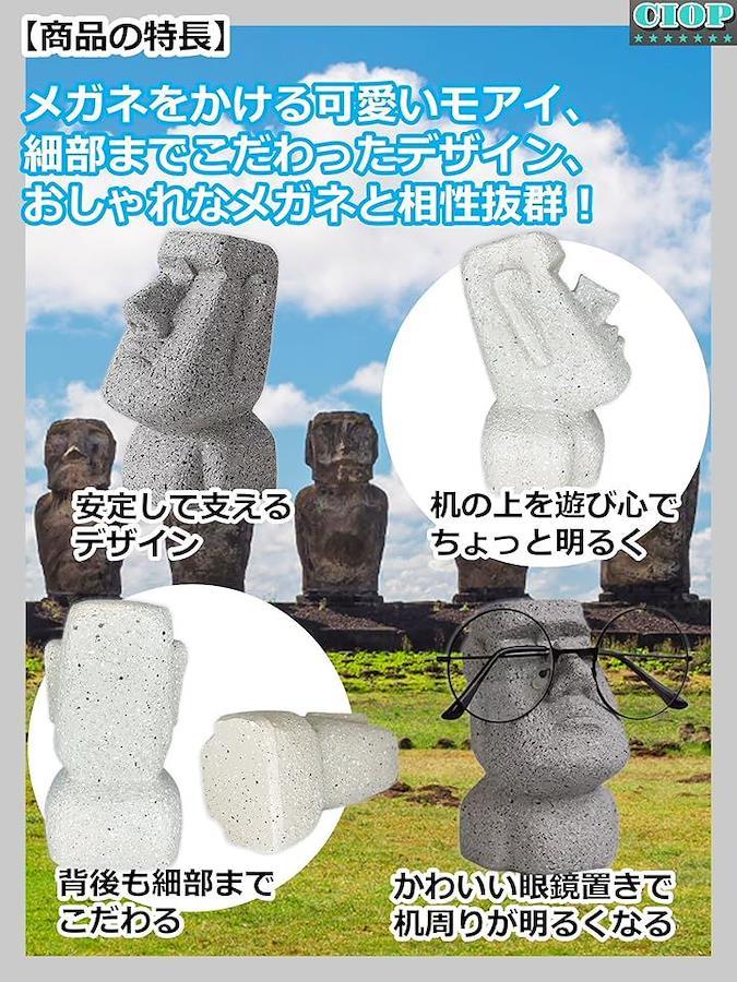 「ユニークなデザイン」:優しくコミカルで かわいい モアイ があなたのメガネを顔でがんばってやさしく支えてくれます。