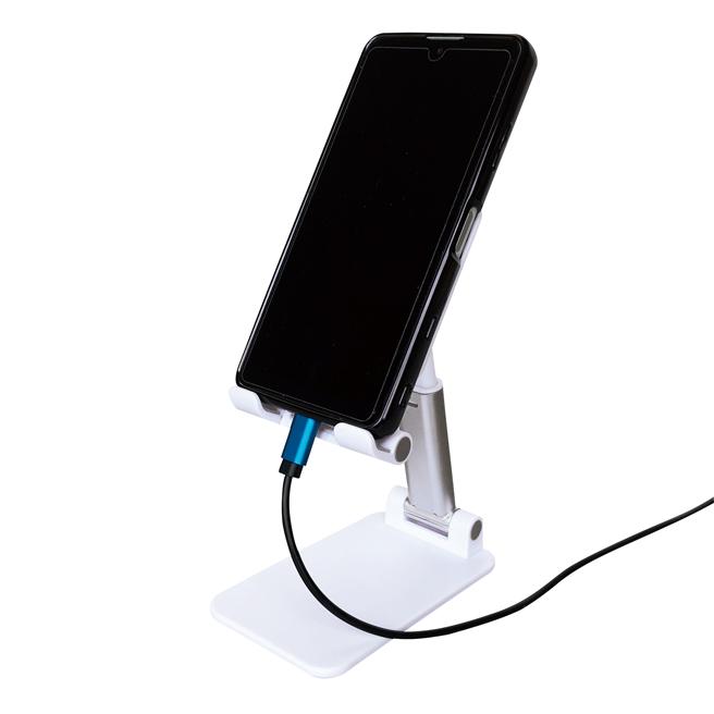★ハンズフリーで作業も快適。高さ、角度の調整ができ、充電プラグを差したまま置ける!!*ベストなポジションで動画視聴やテレワークにも。*写真撮影にも重宝。*デバイス固定で手ぶれナシ!*テーブルの高さを約4cm上げることができ、テーブルと支柱の角度を調節できるのでデバイスの安定度はもちろん、好みのポジションで使用できます。*折りたたんで携帯も。バッグやポケットに入れて職場と自宅、出先でも。