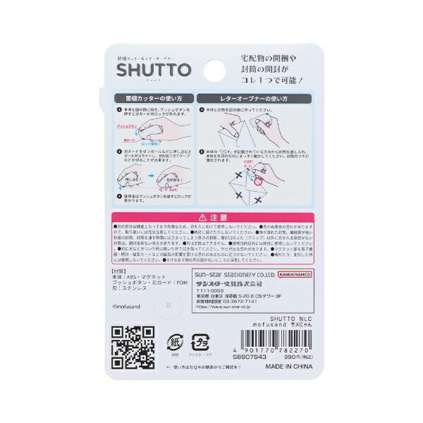モフサンド(サメにゃん)の開梱カッター&レターオープナー(シュット)です。開梱カッターとレターオープナーがひとつになった2WAYカッター。マグネット付きなので冷蔵庫などにくっつけられるのでパッと使えて便利なアイテムです☆