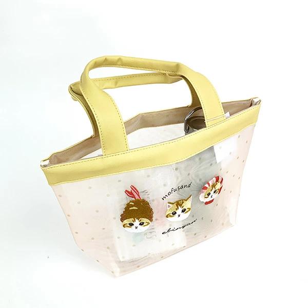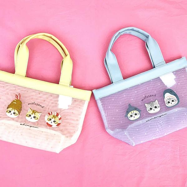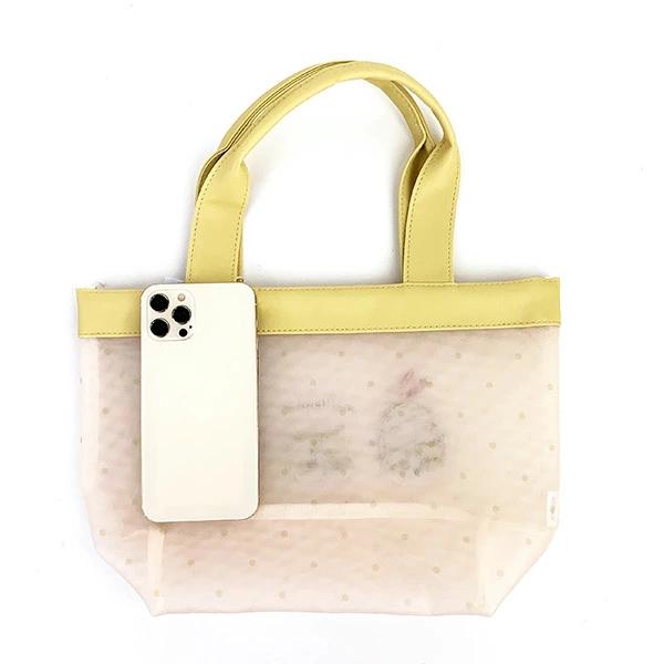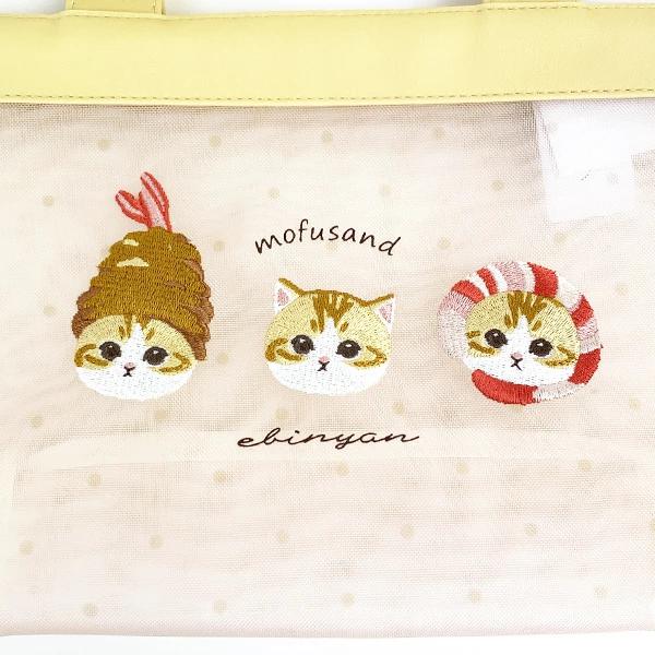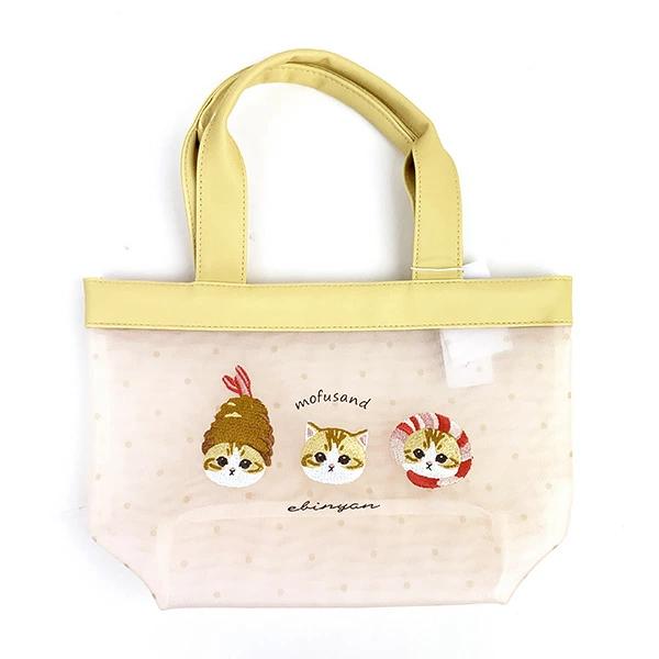 夏らしいメッシュ生地に大きなえびにゃんの刺繍が可愛いミニトートバッグです。ちょっとした外出やランチタイムに大活躍アイテムです♪