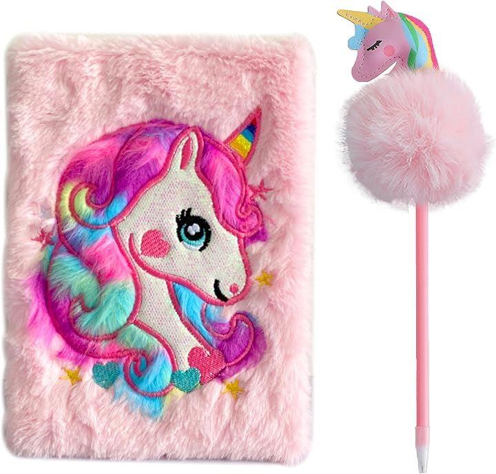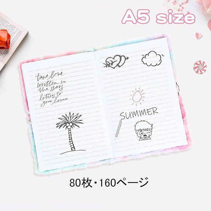サイズ(約):縦 21.5cmx横 14.8cm(A5サイズ) 全160ページ(罫線入り) 付属品:モフモフユニコーンペン(ペン先0.7mm)