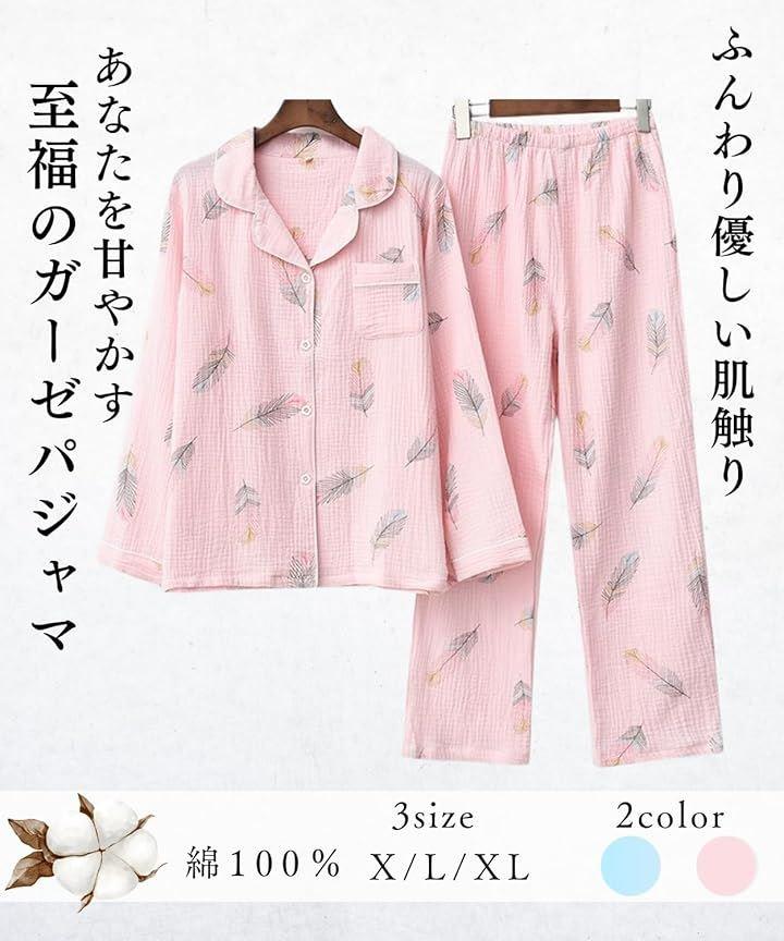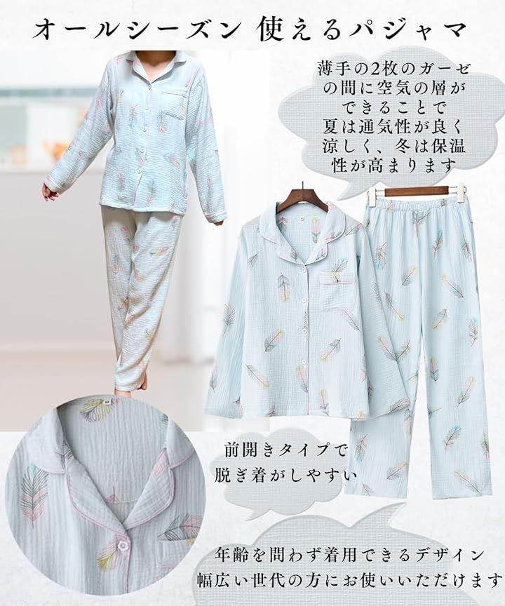 「優しい肌触りのガーゼパジャマ」天然素材である綿100%のダブルガーゼを使用した女性用長袖パジャマです。
