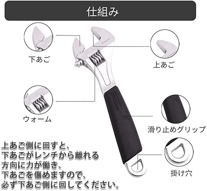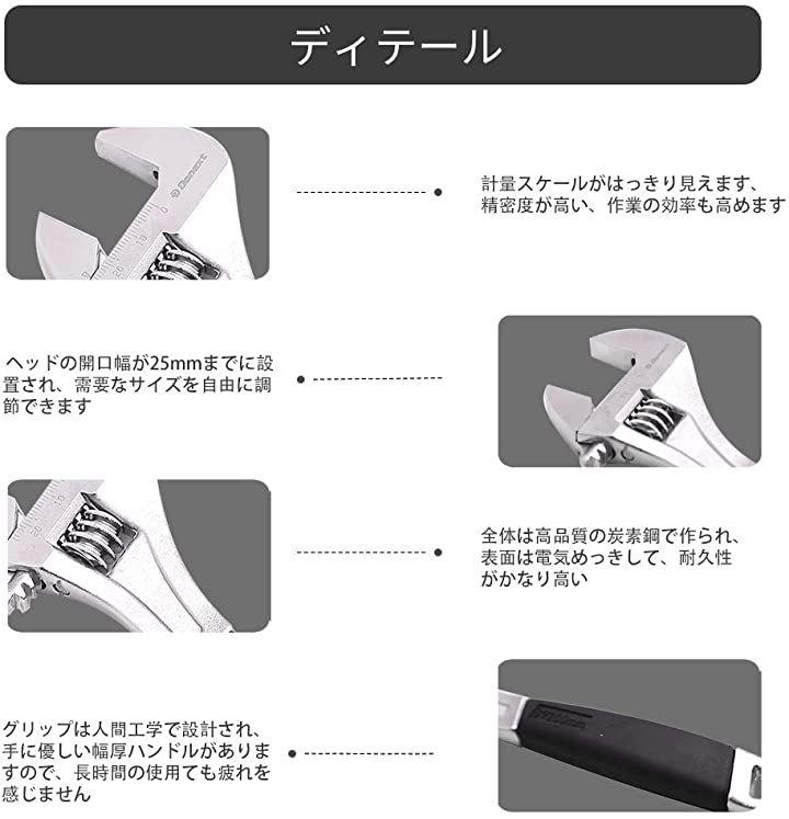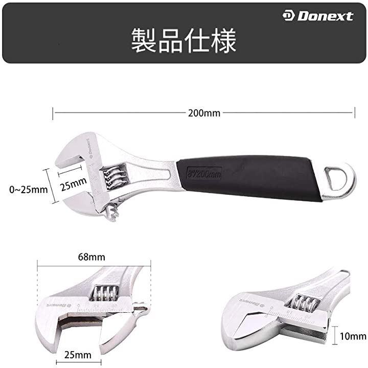 「使用簡単」全長200mm(8)で、ヘッドの開口幅は25mmまでに調整され、需要なサイズを自由に調節できます。