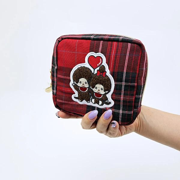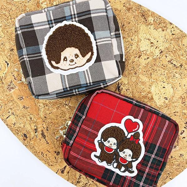 モンチッチのスクエアサガラ刺繍ポーチです。タータンチェック柄の生地がレトロ可愛い~♪コスメ用品や小物を入れるのに◎小さめのコンパクトサイズなので持ち運びにも便利☆可愛いモンチッチの刺繍ワッペンにほっこり癒されます♪