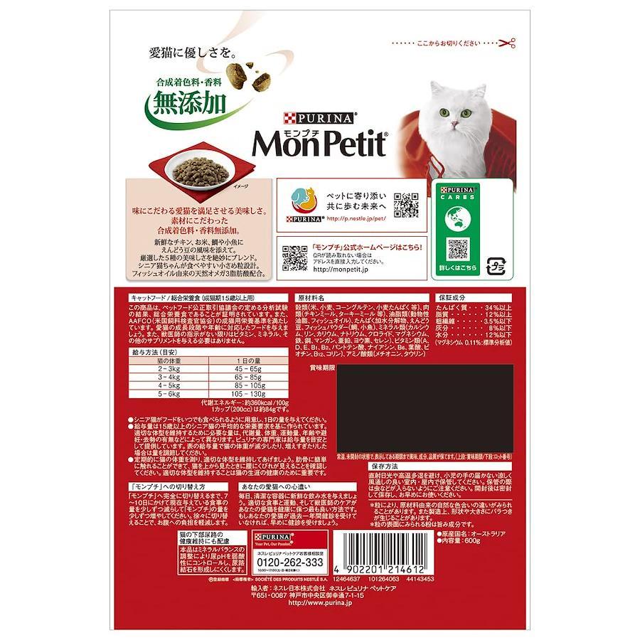 新鮮なチキン、おなかに優しいお米、鯛や小魚にえんどう豆の風味を添えて。厳選した5種の美味しさをバランスよくブレンド。シニアの猫が食べやすい小粒タイプ。フィッシュオイル由来の天然オメガ3脂肪酸配合。安心の合成着色料、香料無添加。