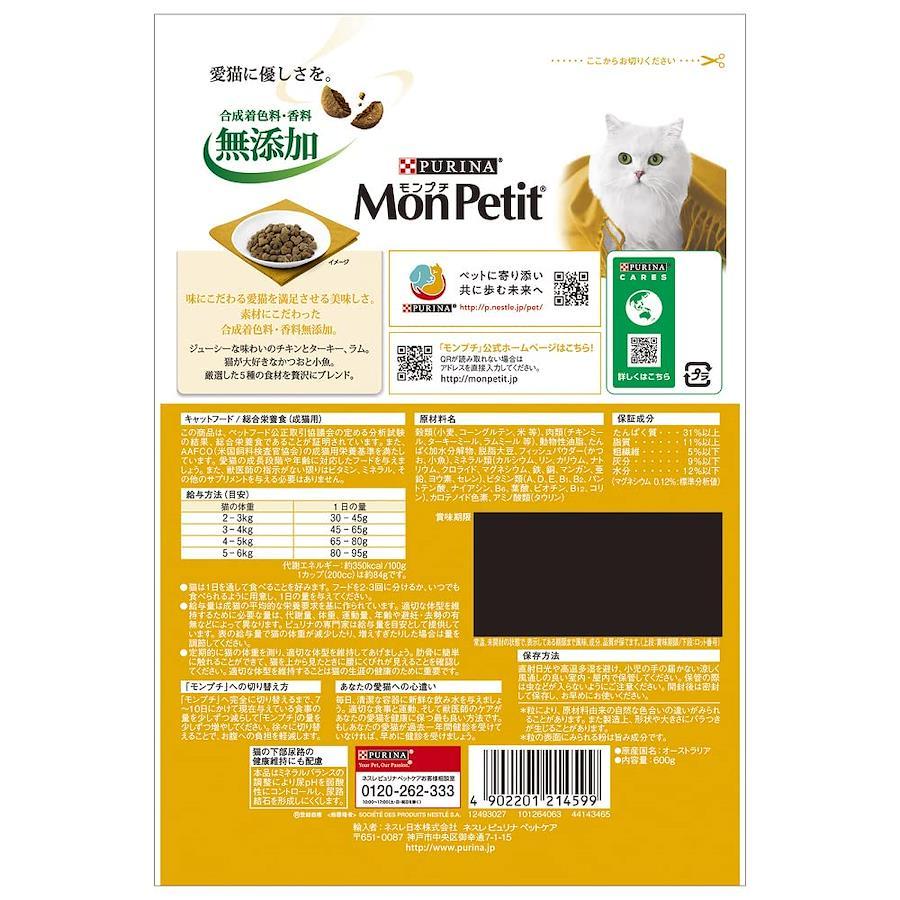 ジューシーな味わいのチキンとターキー、ラム。猫が大好きなかつおと小魚。厳選した5種の食材を贅沢にブレンド。安心の合成着色料、香料無添加。
