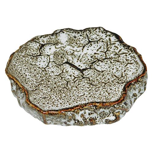 まるで本物の岩石のような風情の陶器皿です。個性的な存在感でありながら、様々な料理を引き立てます。☆演出性の高い料理皿として、和洋問わず盛ることができます。☆アクセサリーや貴金属などのディスプレイ備品としてもお使いいただけます。※裏側は空洞です。