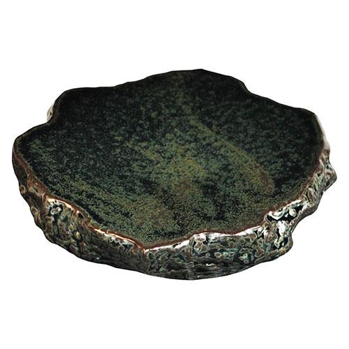 まるで本物の岩石のような風情の陶器皿です。個性的な存在感でありながら、様々な料理を引き立てます。