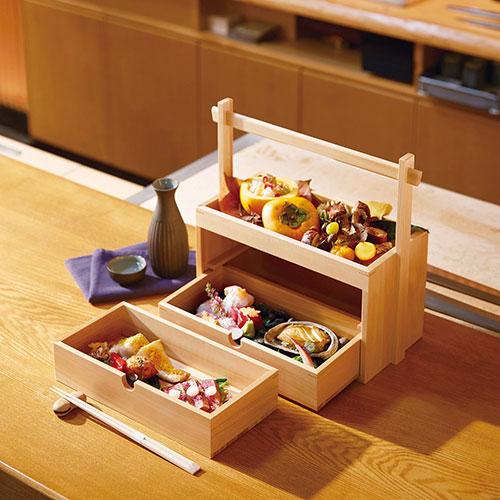 しっかりとした持ち手と引出タイプの箱膳が特長です。