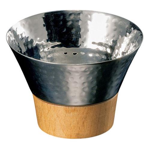 ステンレスと木の組み合わせ小鉢です。金属の涼しさと木のあたたかみが料理をよりおいしくみせてくれる食器になります。