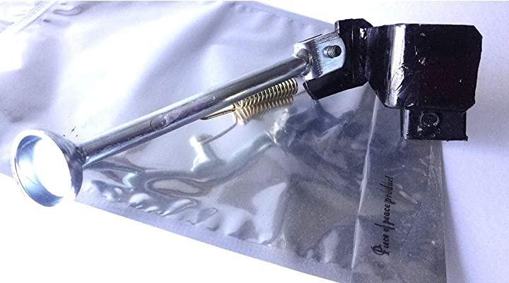 ・マフラー 交換 して ロング スイングアーム に 変更 して サスペンション バック ミラー シート に フェンダー ヘッドライト に ウィンカー ブレーキ ランプ 点火系 駆動系 まで 交換 して カウル を ペイント までしたら 最後 の 仕上げ は サイドスタンド で キマリ 。