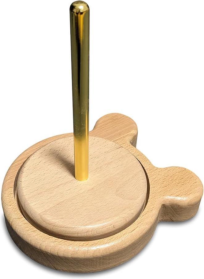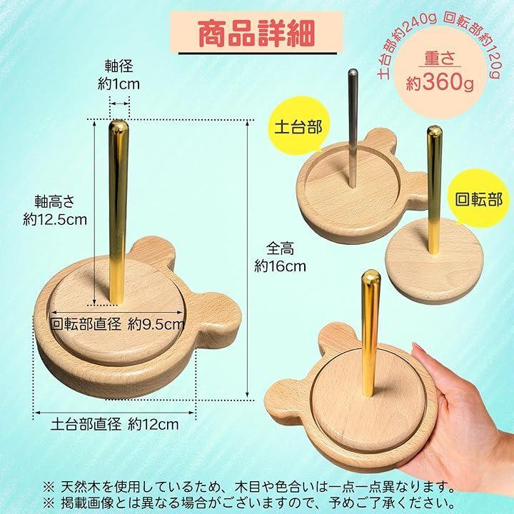 「商品名」くるくる糸巻(ヤーンホルダー) 「サイズ」直径約12cm 高さ約16cm 「重さ」約360g 「材質」本体:木製(天然木) 軸:金属