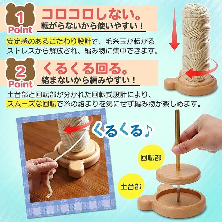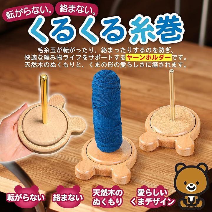 くるくる糸巻き」毛糸玉が転がったり、絡まったりするのを防ぎ、快適な編み物ライフをサポートするヤーンホルダーです。