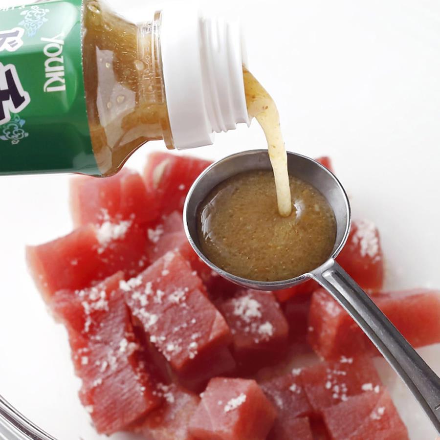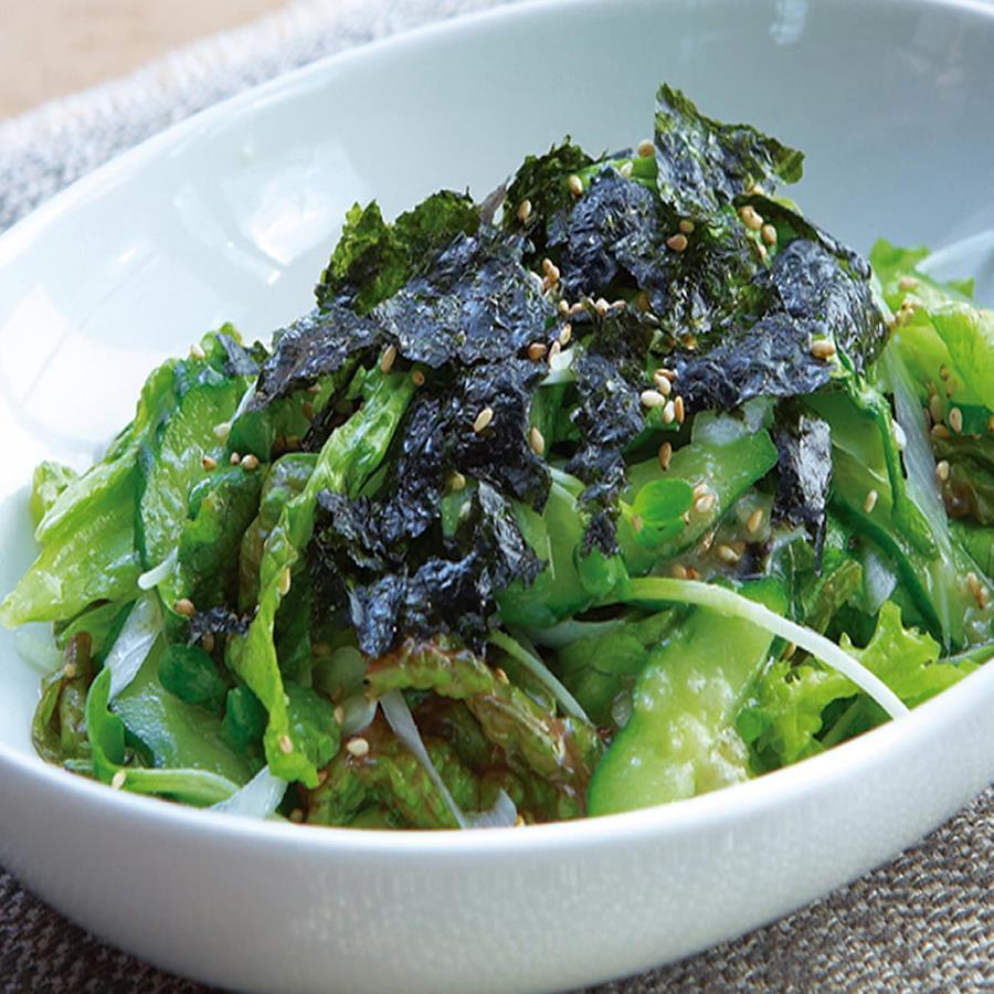 ごま油の香りとコクのある旨味のドレッシング。食べやすくちぎったレタスにかけるだけで、韓国チョレギサラダの出来上がり。
