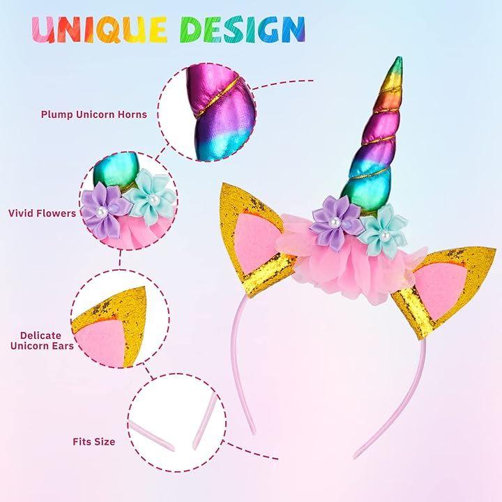ユニコーンパーティー用品 - 誕生日、ユニコーンのテーマ、ハロウィン、クリスマスパーティーに最適、カラフルなヘッドバンドがお子様をパーティーの焦点にします。
