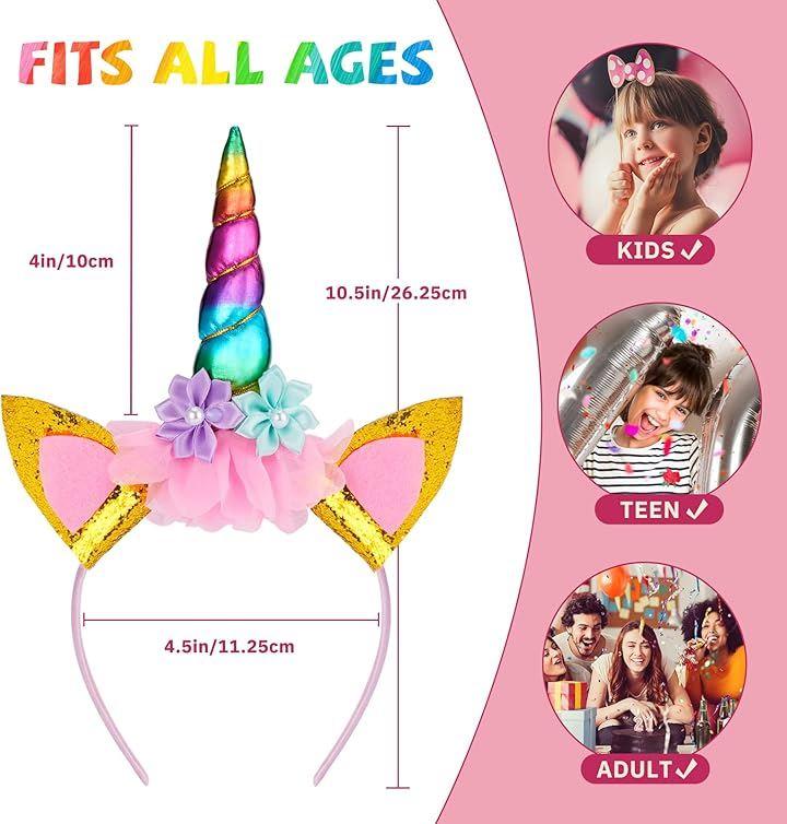 ソフトで快適 - 女の子用のユニコーンヘッドバンドは、軽量で快適、ユニコーンパーティーハットは大人を含む2歳以上にフィットします。