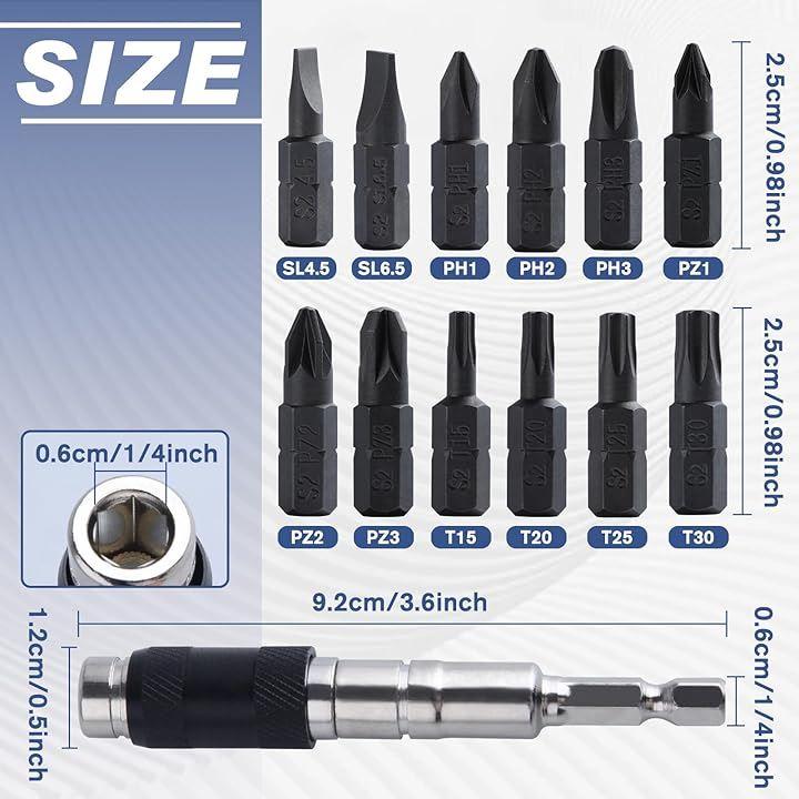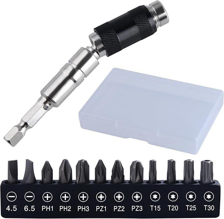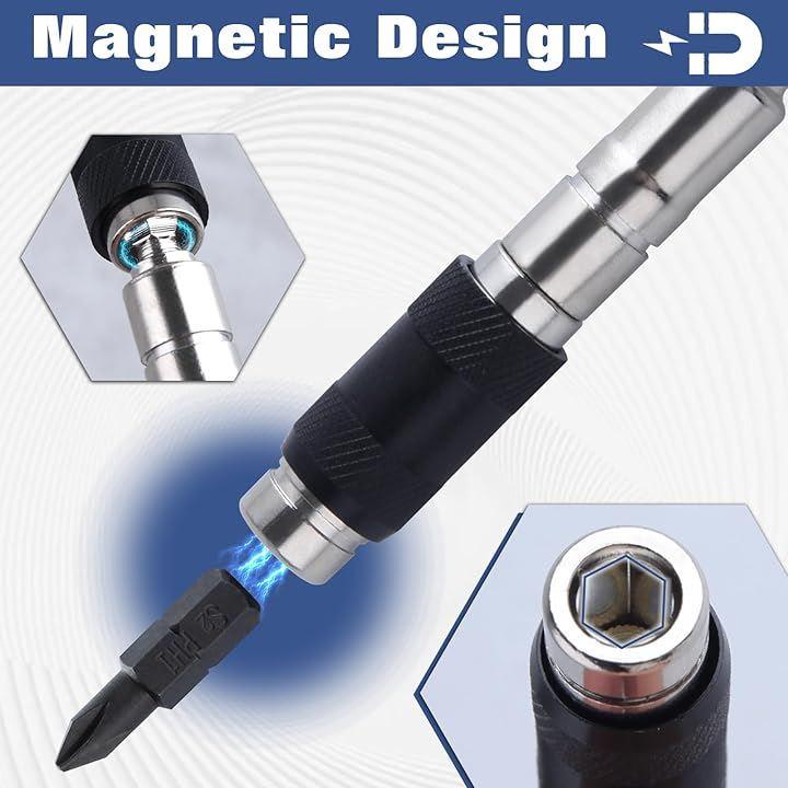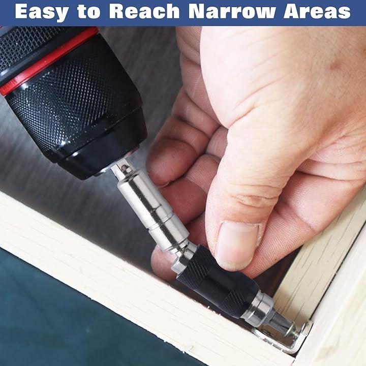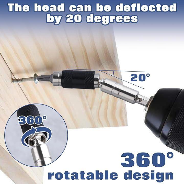 「幅広い用途」一般的な1/4インチ六角ネジビットまたはドリルチップに適しており、特に限られた環境でねじ込み用電動ドリルに適しています。