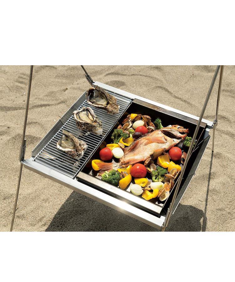 サイズ:使用時/約500×810×790(高さ)mm、収納時/約500×560×75(厚さ)mm材質:本体/フレーム:ステンレス鋼重量:約5.3kg(炉・フレーム)・付属品:Sカンチェーン×2本、スチール網150×400(1枚)、スチール網300×400(1枚)分散耐荷重:約15kg ※収納ケース「焚き火テーブルトート」は別売りになります。