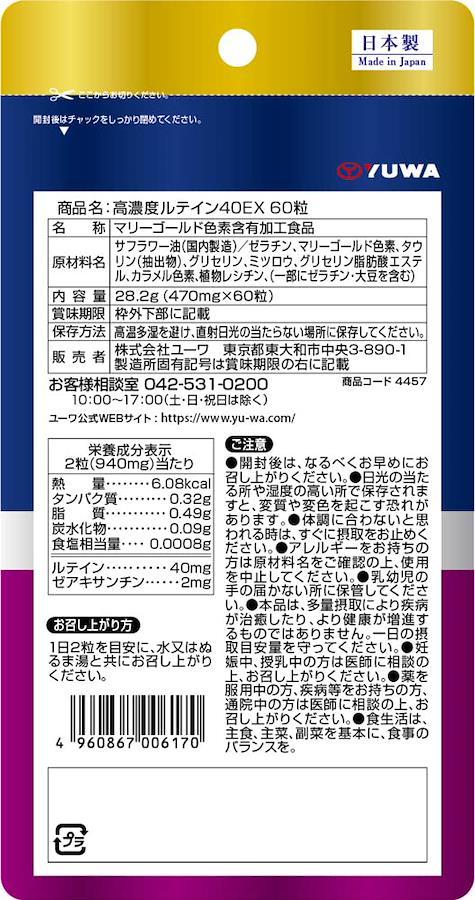 ユーワ 高濃度ルテイン 40EX 60粒 4457