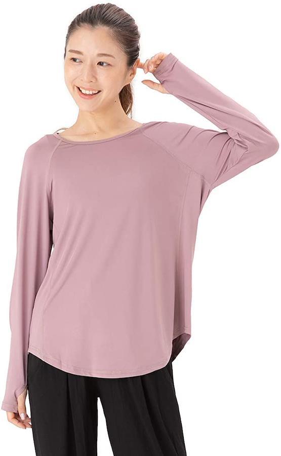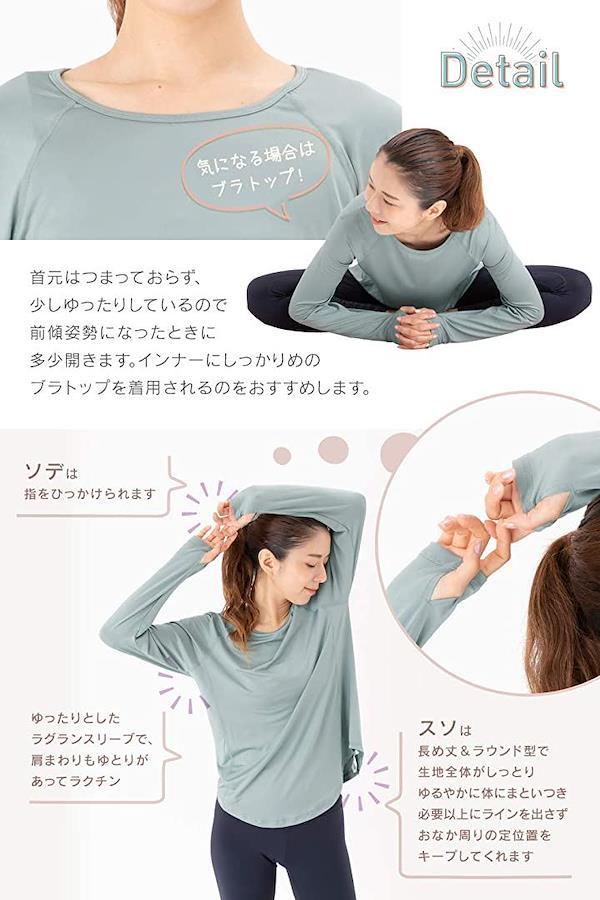 肩がつっぱらないデザインで、腕の動きを妨げない楽な着心地の ヨガウェア 」 .