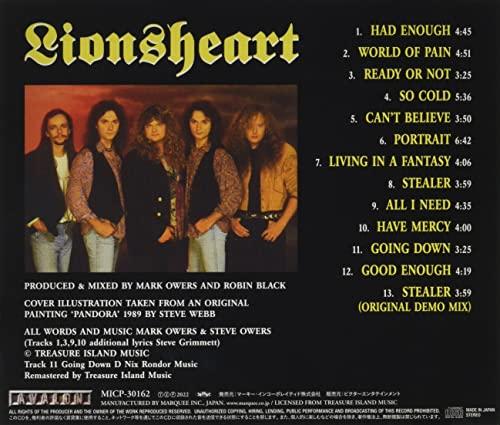 通常1-5営業日で発送:内容紹介 イギリスで結成され、NWOBHMの遺伝子を色濃く受け継いだ正統派メロディック・ロック・バンドとして高い評価を得たLIONSHEARTのデビュー作(1992年リリース)。デビュー・アルバムにしてバンド最高傑作と名高く、そのHR/HM史に名を遺す不朽の名作が遂に再発。LIONSHEARTはマーク&スティーヴのオウアーズの双子兄弟により結成され、その後元GRIM REAPER, ONSLAUGHTだったスティーヴ・グリメットが合流。セルフ・タイトル名義のデビュー・アルバムとして1992年にリリースされた(日本盤は93年初頭)のが本作である。そのアルバムの中でも収録曲『キャント・ビリーヴ』が、当時の日本のメロディック・ロック・マニアから注目されるや否や、瞬く間に日本で大ヒット。アルバムも驚異のセールスを記録した。バンドは9年代をけん引するブライテスト・ホープのバンドとして一躍脚光を浴びる。オリジナル・リリース後約3年を経て日本では初の再発。また今回の再発に際して本作はリマスター仕様、かつSHM-CD仕様になっている。そして今回はオウアーズ兄弟が本再発のために提供してくれ