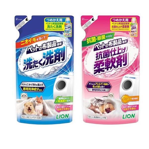 製品の特徴●LION(ライオン)ペットの布製品専用 洗たく洗剤●ペットの布製品を洗うための洗濯用コンパクト洗剤です。●タオル、マット、毛布などのニオイから毛までスッキリ落とします(*1)。●ペットのニオイ汚れを落とす専用洗浄成分配合。●洗うたびに高まる離毛効果。●すすぎ1回でOK。●ドラム式洗濯機にもおすすめ。●ペットに安心設計(皮ふ刺激性なし判定処方(*2))。●グリーンフローラルのマイルドな香り。●無けい光。●別売の「LIONペットの布製品専用 抗菌仕上げ柔軟剤」とのセット使いがおすすめ。●品名:ペット用 洗濯用合成洗剤●用途:綿・麻・合成繊維のお洗濯●液性:中性