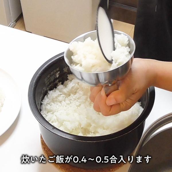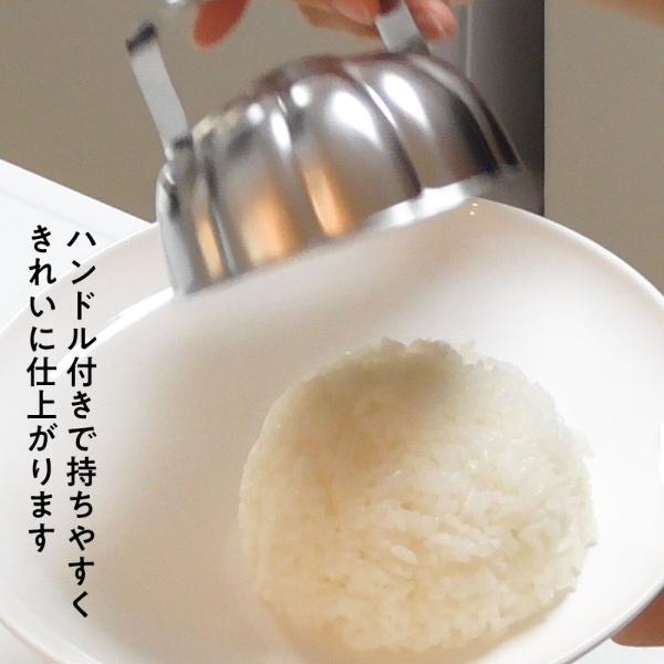 ご飯茶碗より軽く、また持ちやすいハンドル付きなので、簡単に型抜きご飯がつくれますよ。