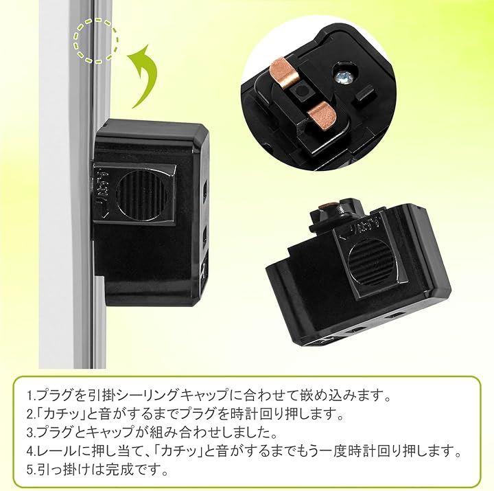 3、取り付け簡単:工事不要で、ダクトレールの溝に差し込んで右に回すだけで、手軽に取り付けられます。