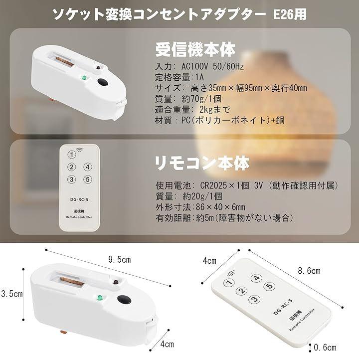 適合負荷は110V 1A 50/60Hzで、LED電球、白熱灯60Wまで、蛍光灯25Wまで対応しています。