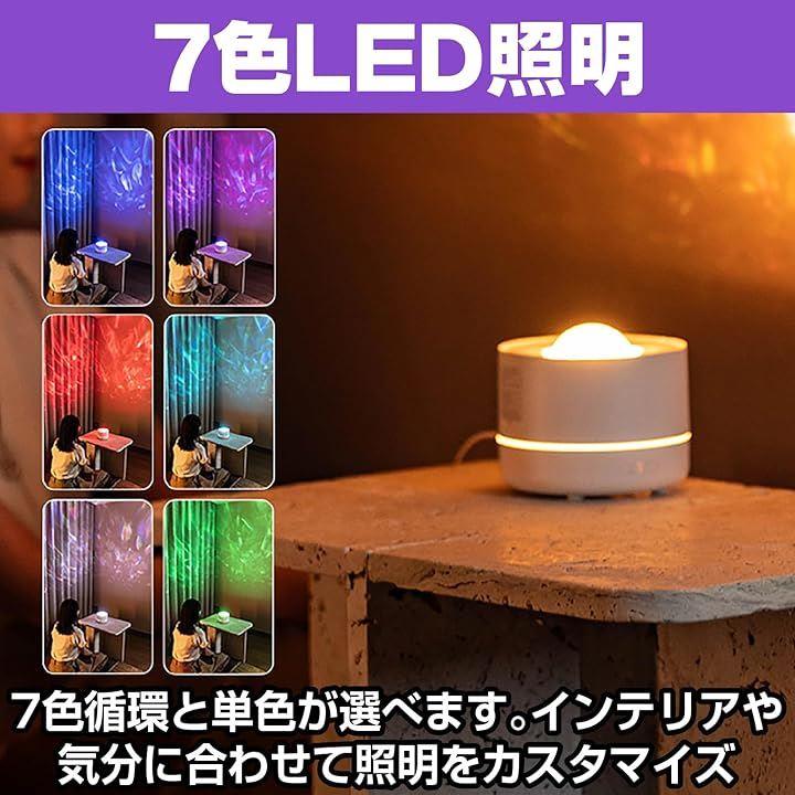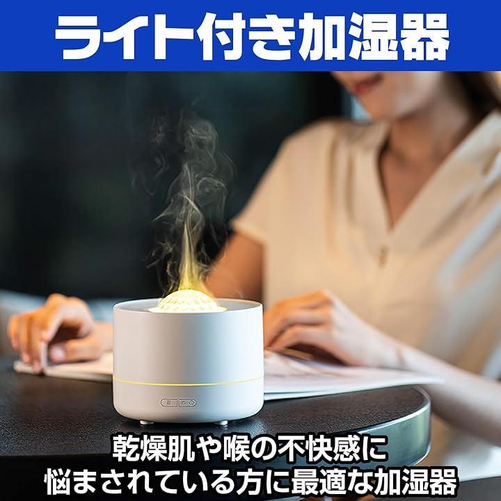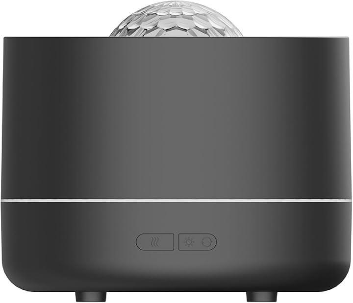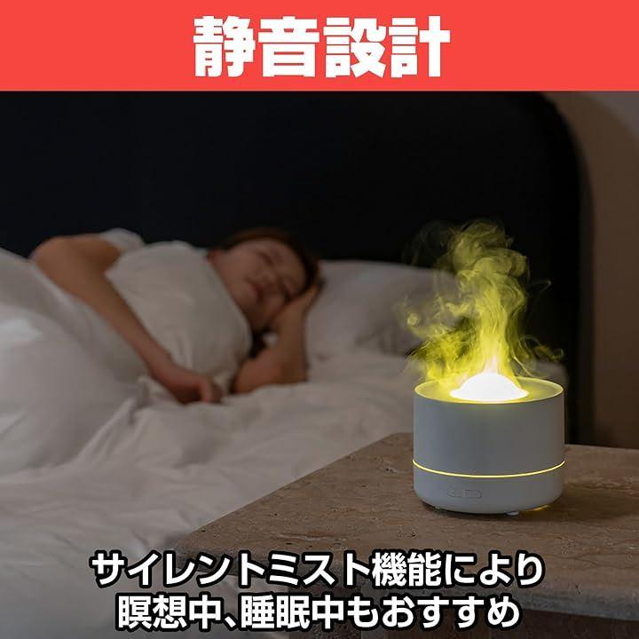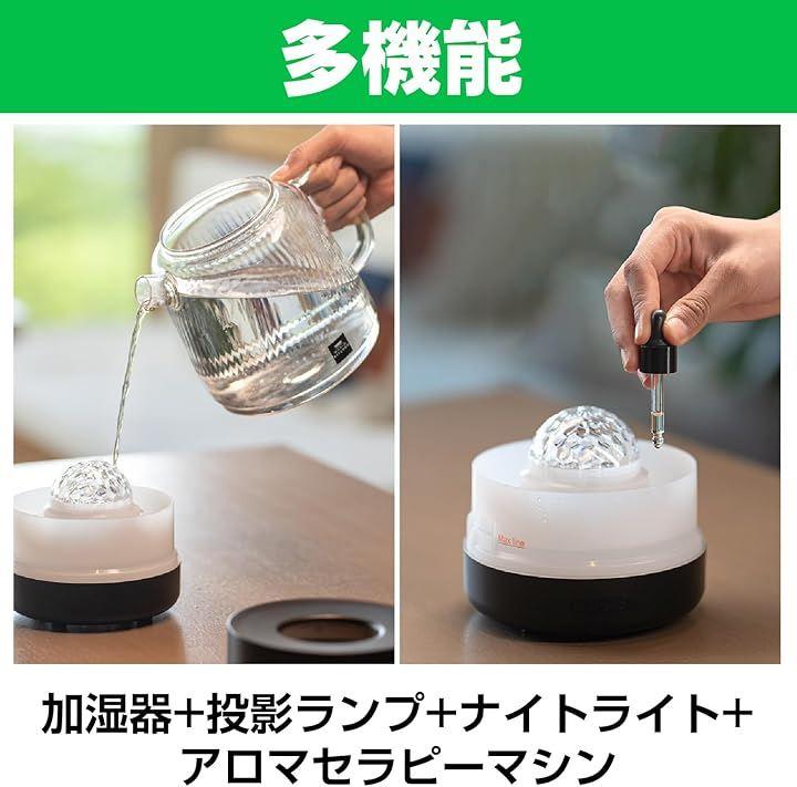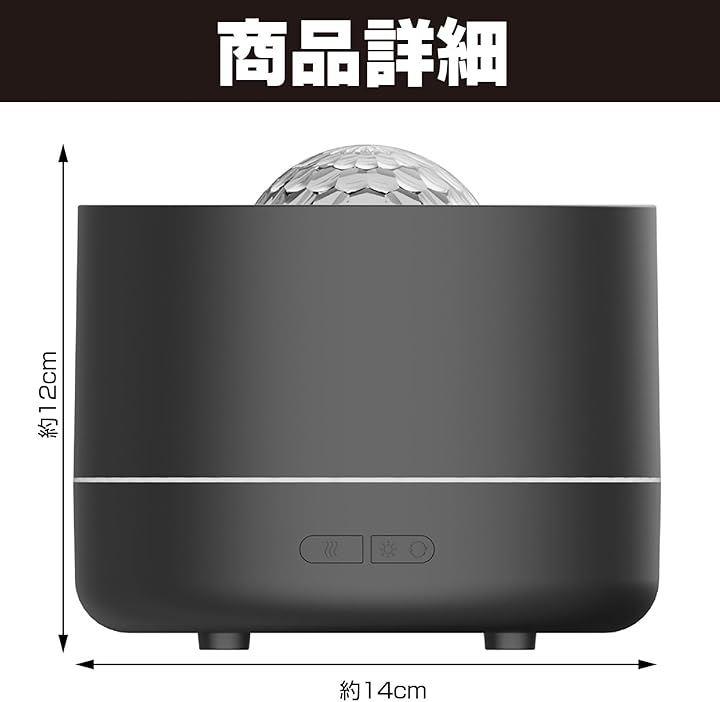 「インテリアを彩る多機能デザイン」 加湿器・アロマディフューザー・炎ライト・星空プロジェクターが一体化した多機能設計。