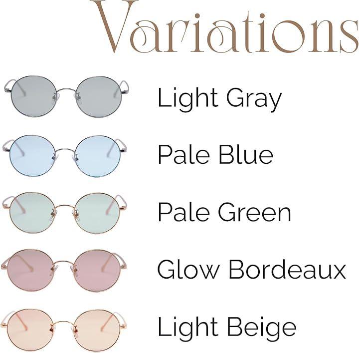 「豊富なカラー展開」フレームはゴールドとシルバーの2色、レンズはグロウボルドー・ペールグリーン・ペールブルー・ライトグレー・ライトベージュの全5カラー展開。