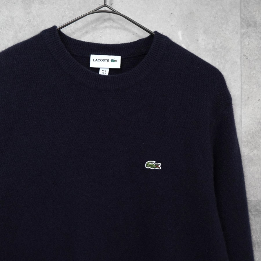 Lacoste Logo Patch Wool Knit Sweater, Navy, Men's