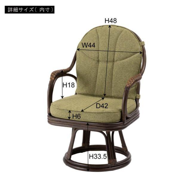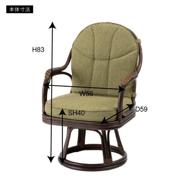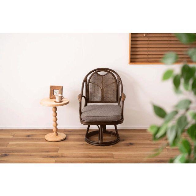 〈製品規格〉商品サイズ:W56×D59×H83×SH40cm重量:8kg静的耐荷重:80kg材質:ラタンラッカー塗装ポリプロピレンポリエステル機能:回転式組立:要組立品生産国:インドネシア