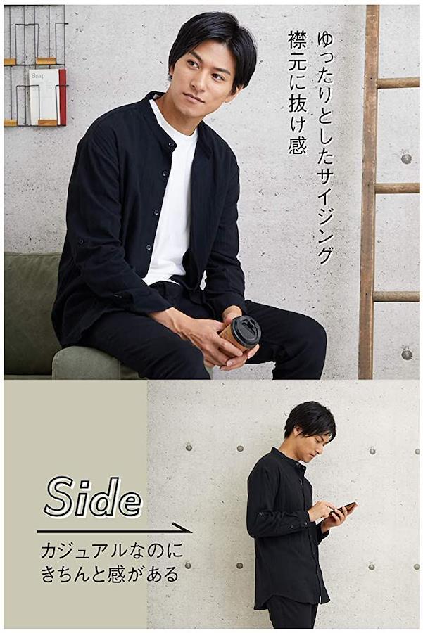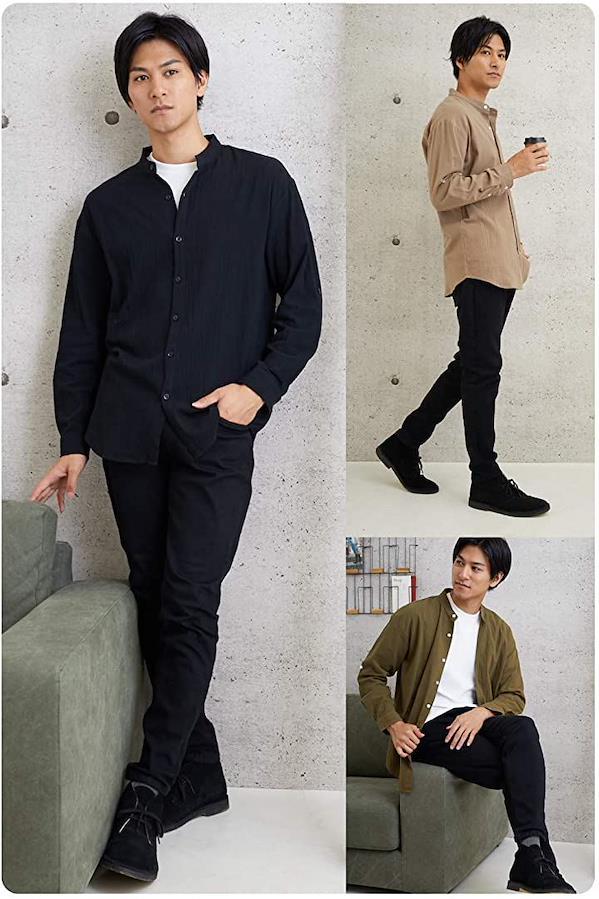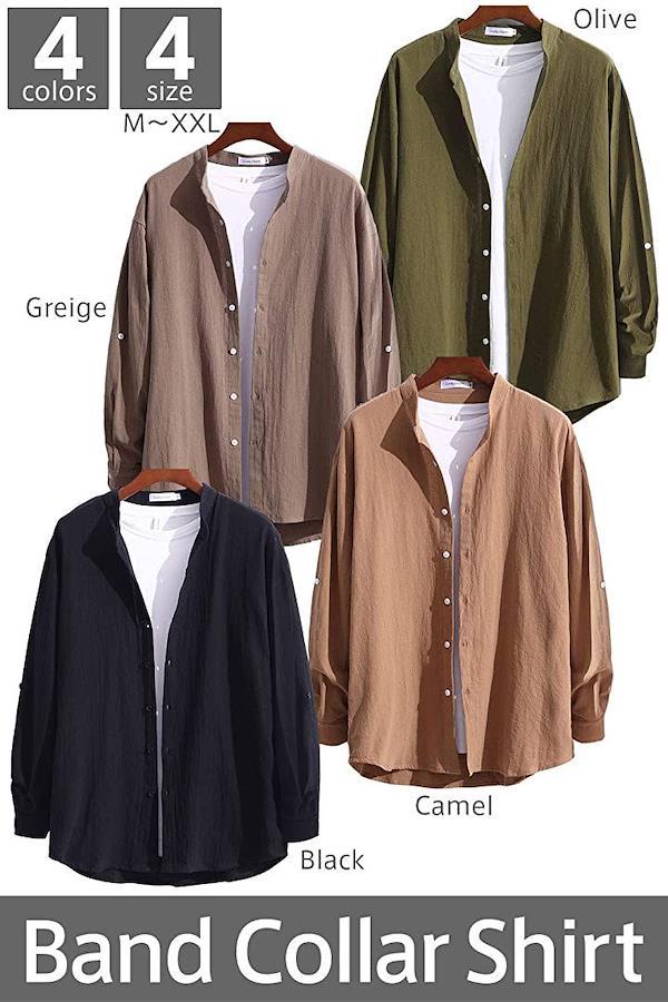 いつものシャツと違う「バンドカラーシャツ」をコーデに入れるだけで、お洒落に着こなすことができますよ。