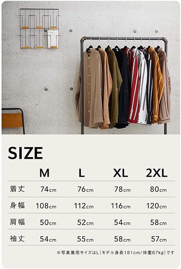 [M:着丈74cm/身幅108cm/肩幅50cm/袖丈54cm][L:着丈76cm/身幅112cm/肩幅52cm/袖丈55cm][XL:着丈78cm/身幅116cm/肩幅54cm/袖丈56cm][2XL:着丈80cm/身幅120cm/肩幅58cm/袖丈57cm]