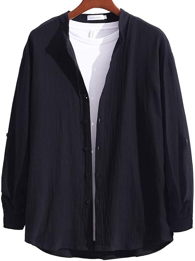 *シンプルデザインのバンドカラーシャツ。