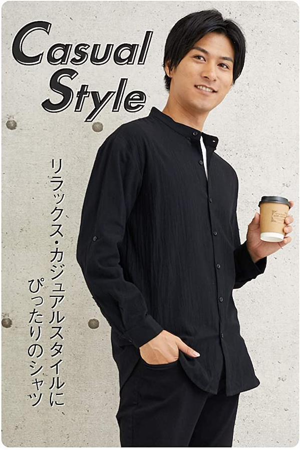・*ゆったりサイズのバンドカラーシャツは、細身のパンツでIラインのコーデがお洒落です。