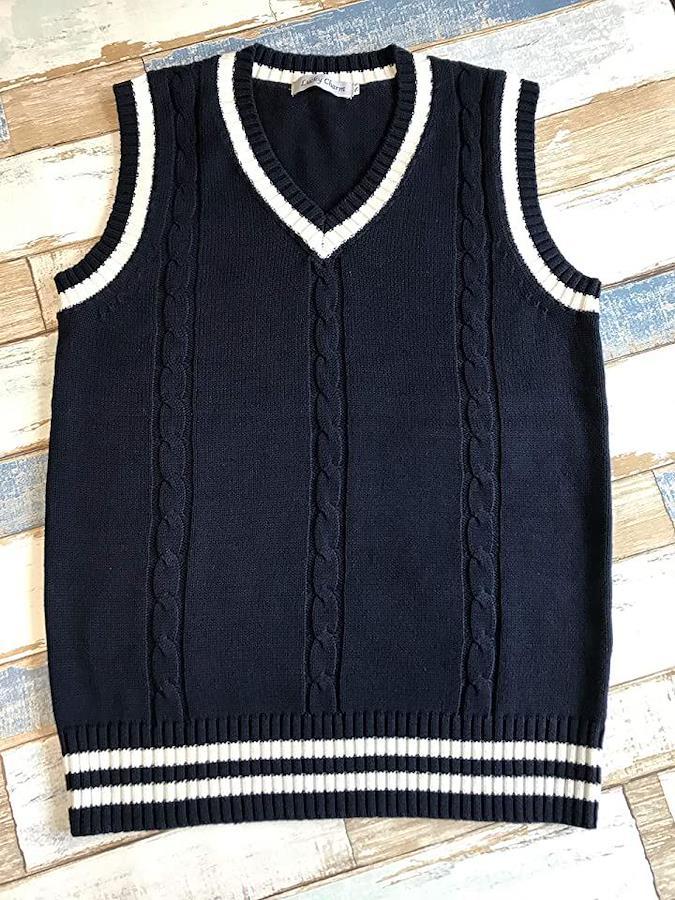 ・*ケーブル編み(縄編み)の入ったVネックニットベストです。