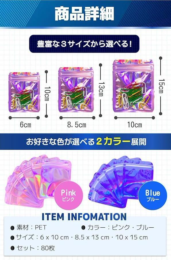 「商品詳細」素材:PETカラー:ピンク・ブルー/サイズ:6 x 10 cm・8.5 x 13 cm・10 x 15 cm/セット:80枚/