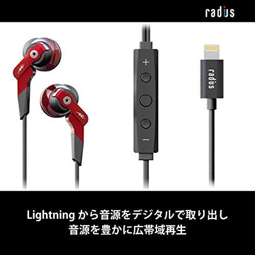 【Lightning接続】Lightningから音源をデジタルで取り出し、音源を豊かに広帯域再生 iPhoneからデジタルで音源を取り出し、ケーブルの分岐部に配置されたDAC アンプ内蔵のリモコンにより、プレイヤーの画面に触れることなく楽曲の再生/停止/曲送り/曲戻し/早送り/巻き戻し/音量アップ/音量ダウン/着信時の受話/終話/Siriの起動といった操作が可能です。【独自開発の"High-MFD構造ドライバー"搭載】ダイナミックドライバーのボイスコイルから漏れる磁束をマグネットの反発磁力によって閉じ込め、磁束密度を高めることで「感度」「音質」が向上します。【ディープマウントイヤーピース】radius独自開発の「ディープマウントイヤーピース」を採用しています。 従来型とは異なりフィットするエリアが広い形状が特徴で、 優れたフィット感で耳にやさしい装着感、高い遮音性、豊かな低音再生を実現します。【アジャスタブルポート】独自機構の「アジャスタブルポート」でイヤーピースの装着位置を2段階で調節でき、好みに合ったポジションで装着することできます。耳にしっかりフィットさせることで低音域を逃さず遮音性も高め、耳へのストレスが軽減できます。【スタイリッシュなデザイン】洗練されたスタイリッシュなデザインで、音質だけでなく装着時の見た目も楽しめます。