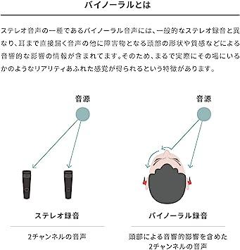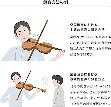 【ハイレゾ録音対応】RM-ATZ19はマイク製品として日本オーディオ協会のハイレゾマークを取得しています。30Hz~40,000Hzの広帯域を収音可能で、より再現性が高く臨場感あふれるバイノーラル音声のハイレゾ録音に対応しています。 ※録音機器がハイレゾ録音に対応している必要があります。