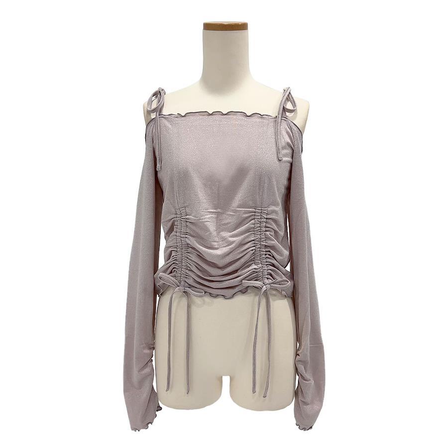 ドロストリボンや肩のリボンなど、リボンがたっぷりあしらわれた可愛いデザインのトップス。