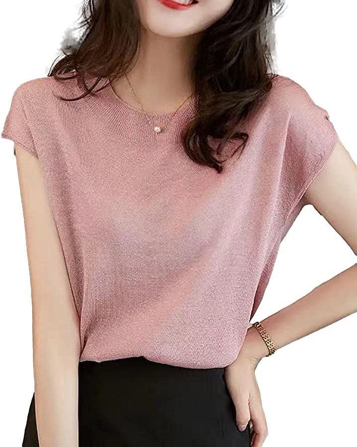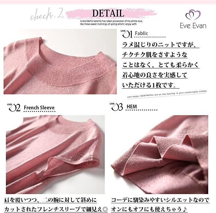 ・「取り入れるだけで即。艶っぽ美人*」 ラメを織り込んだ素材を使用しているので、動くたびに艶のある光沢感を手に入れられる女っぽサマーニット。 透け感を楽しめる薄手の素材なので、インナーを合わせて着こなすのが* ラメ混じりのニットですが、チクチク肌をさすようなことはなく、とても柔らかく着心地の良さを実感していただける1枚です。