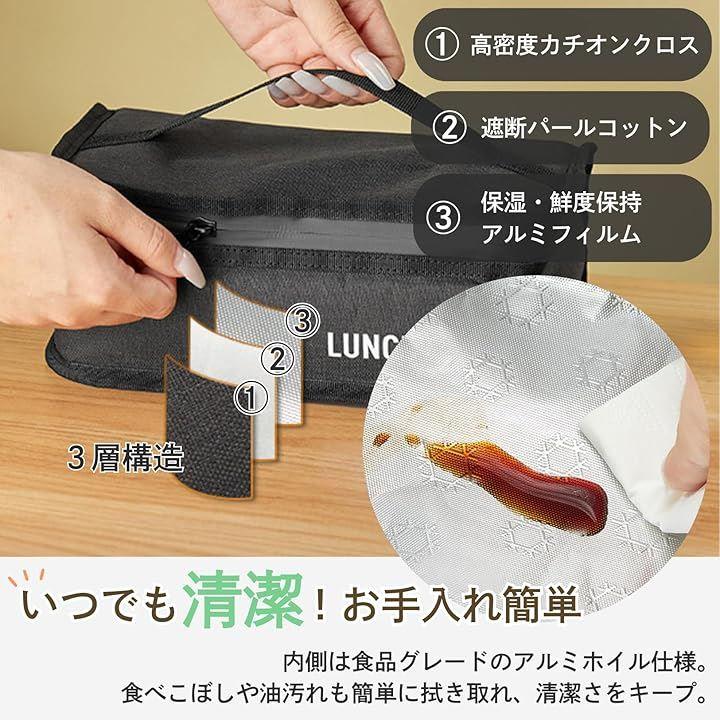 このランチボックスバッグは、優れた断熱性で食事を長時間温かく保ちます。