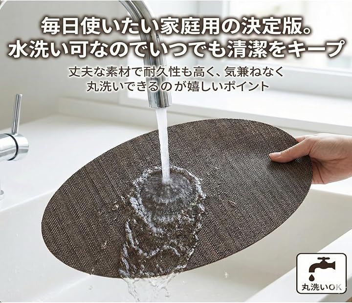 水洗い可能な食卓マットなので、しつこい汚れも丸ごと洗えて常に清潔。
