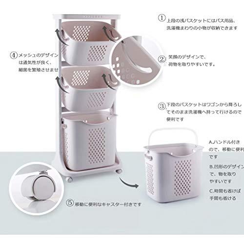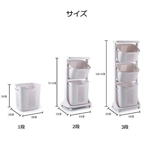 材質:PP、サイズ:1段:38*29*35cm、2段:44*33*75cm、3段:44*33*106cm360°回転、キャスター付いているので固定したい時も安心。下段のバスケットはワゴンから降ろしてそのまま洗濯機へ持って行けるので便利です。メッシュデザインで、簡単に清掃できます。汚れが残る心配はありません。多機能収納:ランドリーボックスとしてだけでなく、衣替えで衣類の整理整頓用や、本など、場合によって色々なものが入れられ、様々なシーンで活躍します。