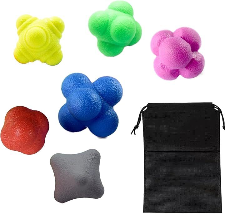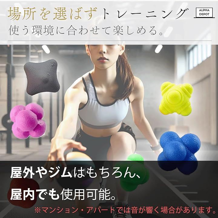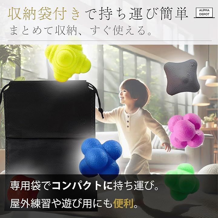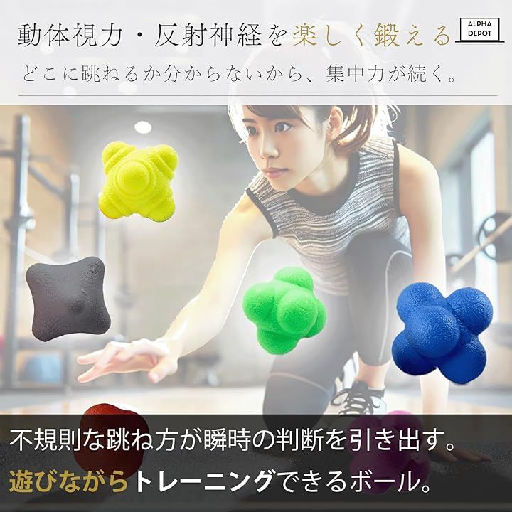 「難易度を選べる多様なボールセット」6種類のリアクションボールがセットになっており、それぞれ弾力や形状が異なるため、難易度を調整しながら練習可能。