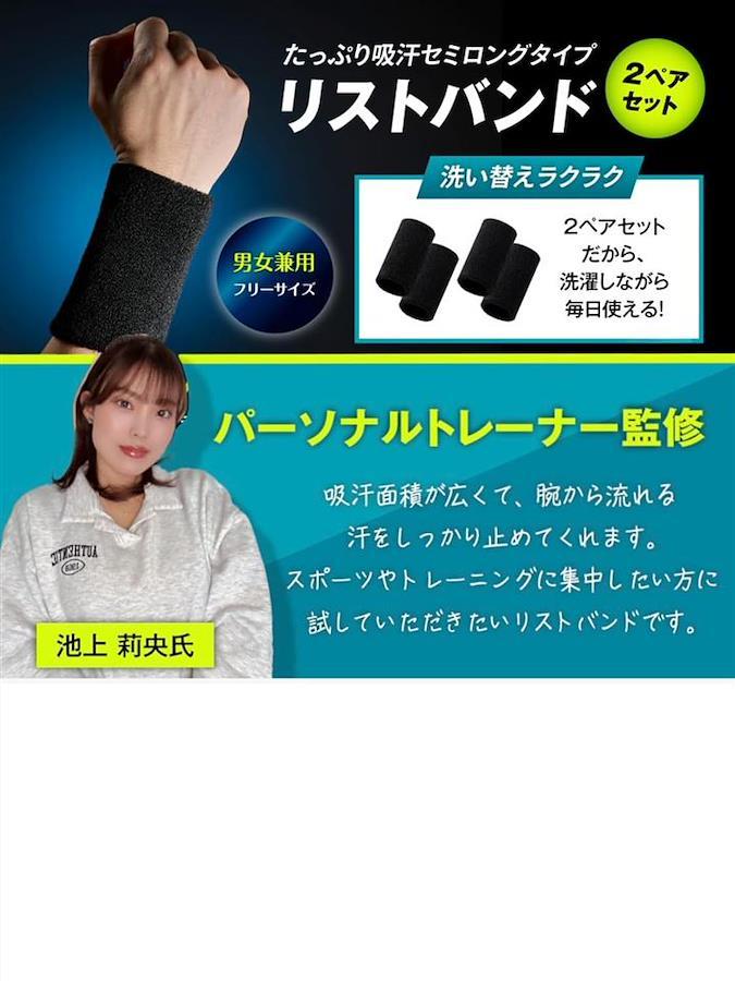 「パーソナルトレーナー監修 リストバンド」ヨガやパーソナルトレーニングの指導をする池上莉央氏が監修。吸汗面積が広くて、腕から流れる汗をしっかり止めてくれます。