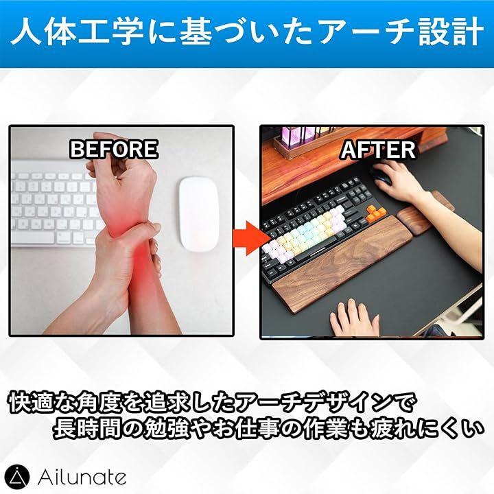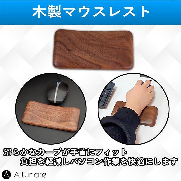 「人間工学に基づいた設計」木製マウスリストレストは適度な硬さで手首をしっかり保持し、快適なデスクワークをサポートします。