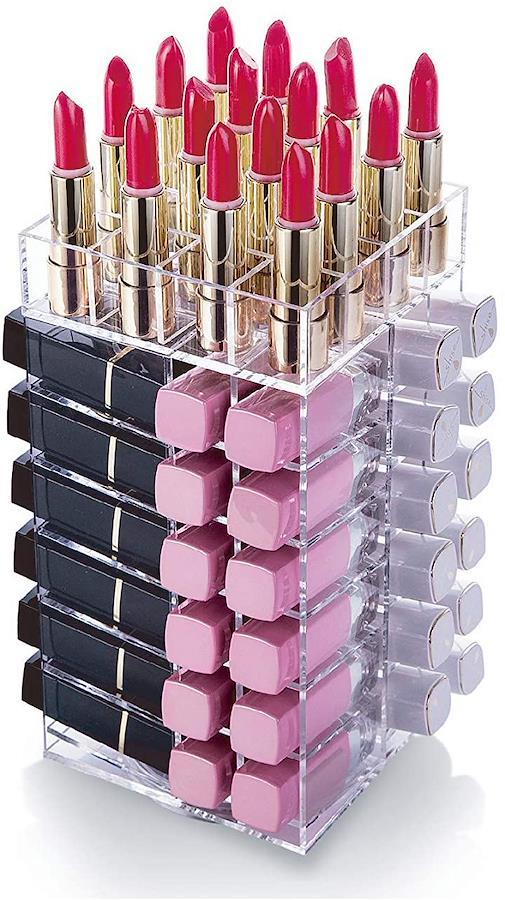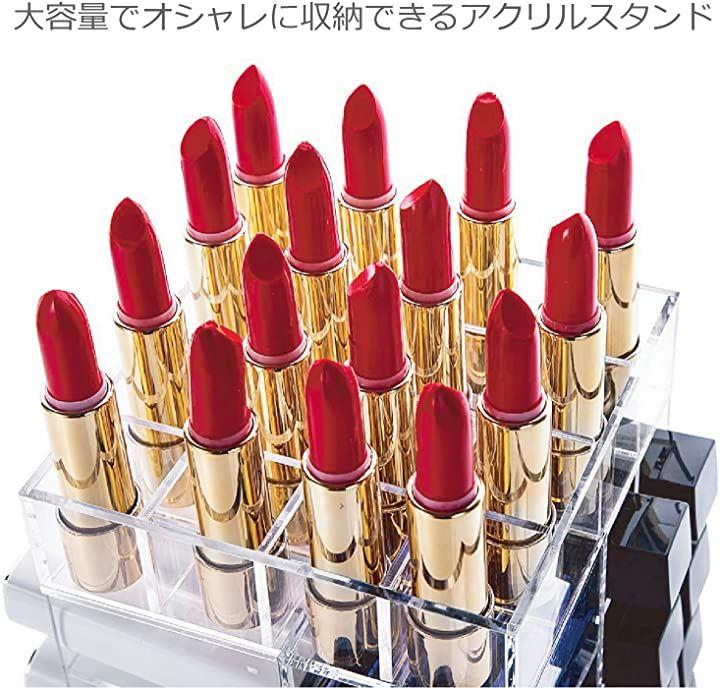 ・「回転式 アクリル リップスタンド」最大64本の収納が可能。